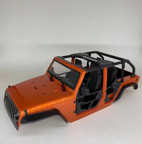Fab Fours Full Tube Doors & Open-Top Rubicon Hard Body for 1/10 Crawler 313mm Kit Version Orange by Team Raffee Co.