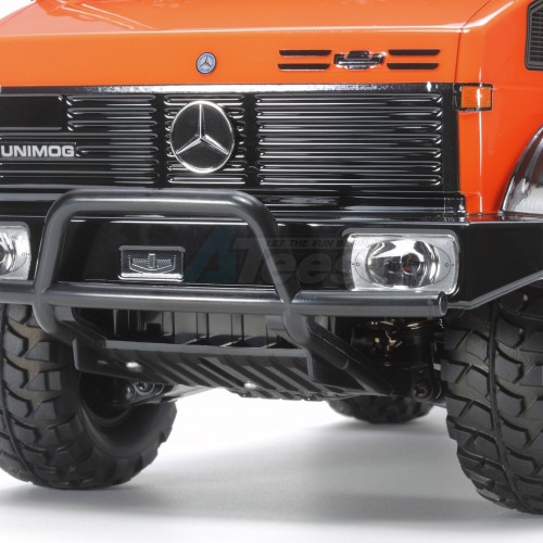 • This is an R/C model assembly kit of the multi-purpose 425, a vehicle in the famed and long-running Mercedes-Benz Unimog series. The polycarbonate body captures with great accuracy the squared lines of the 425, including the boxy cabin and square headlights.