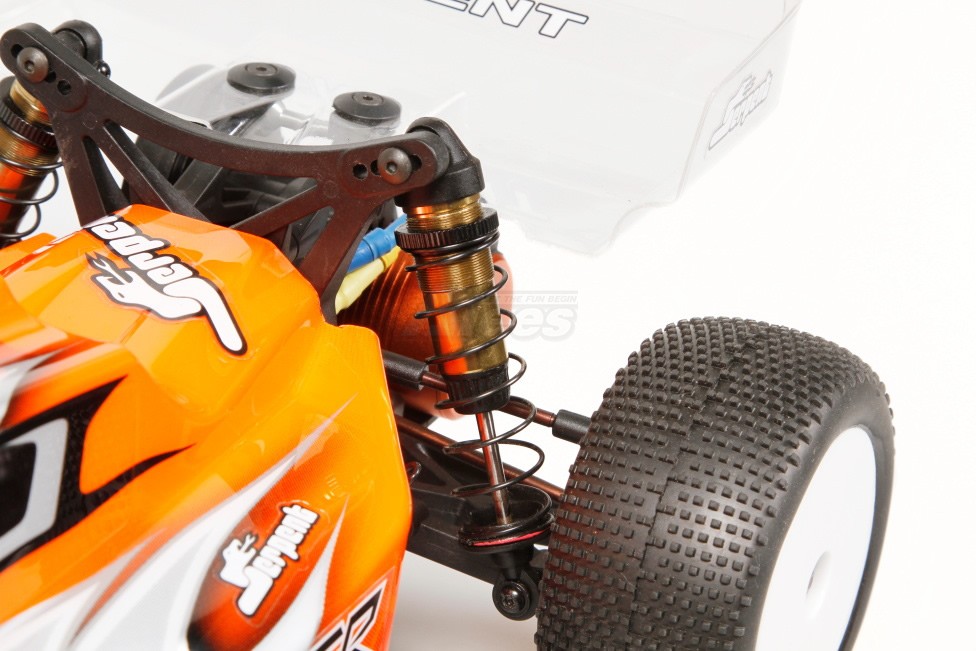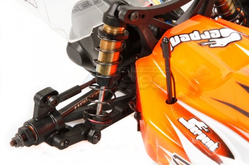 Pre-Painted Body and Rear Wing The prepainted and pre-cut light and low cab-forward style body is made from a top-quality clear polycarbonate material and features a nice flowing line with a steep front windscreen for high-performance downforce. The shark fin on the roof of the cabin not only offers style and great looks but also stability for high-speed travel. The polycarbonate rear wing utilizes raised cutes in the sides to improve wheel clearance. Additionally, the rear wing mount is adjustable from 0, 2, 4, 6, and 8 degrees to further fine-tune downforce adjustment.