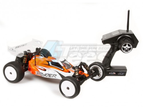 This is the Serpent Spyder SRX-2 MM Mid-Motor 2WD Ready-To-Race 1/10 Scale, Electric Buggy, with an included 2.4GHz Radio System. Designed by World Champion Billy Easton in the USA, the RTR Spyder buggy is based on the high-end competition version of the Spyder MM buggy. To keep parts compatibility simple, both buggies share most components and suspension geometry, while also sharing optional upgrades that can be equipped to the vehicle later.