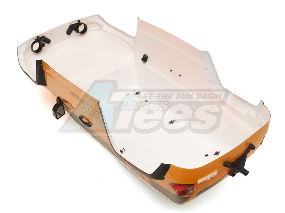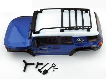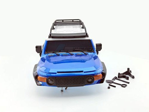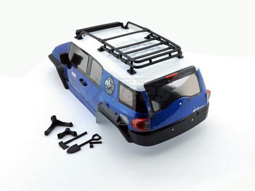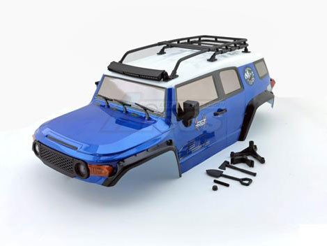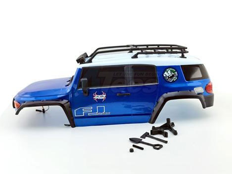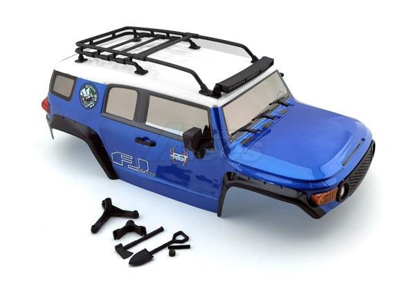 • RGT 1/10 FJ 313mm Lexan body. This body comes painted and comes with body accessories, which include roof racks, angle eye function light, spare tire, air grill, wipers, door handle, and adjustable LED lamp