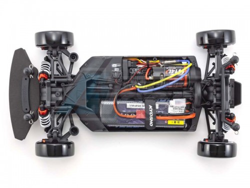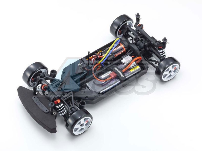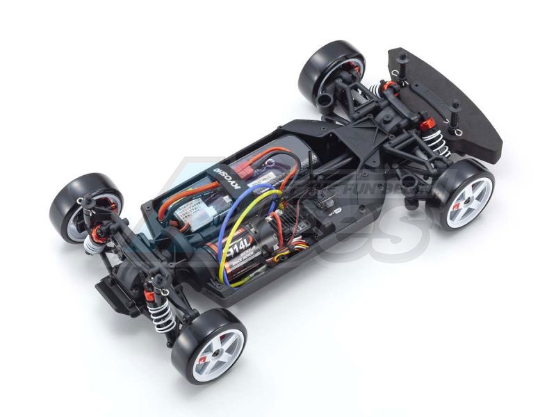 For the pure enjoyment of R/C car driving, the combination of a beautifully reproduced car body with the FAZER series chassis can’t be beaten. Kyosho has taken its standard touring car chassis and given it a full model makeover that has evolved performance to a new level. A simplified design with fewer parts has improved maintenance efficiency and reduced weight while core strength and rigidity have been increased through new materials and ribbing and stiffeners on the front and rear. In addition, the symmetrical chassis design synergizes excellent front-rear balance through the suspension with responsive control, irrespective of the power source. Featuring a slipper clutch, front & rear gear differentials, oil shocks, and full ball bearing specs, the high durability and impact resistance allow drivers to unleash the full potential of the chassis. Brake disc wheel hubs with two different offsets (0mm, +5mm) provide compatibility with 190mm and 200mm width body styles and allow the wheelbase to be adjusted to 274mm by replacing some parts (sold separately) for compatibility with other 1/10 scale body styles, in addition, the body included. The Readyset package comes fully assembled and includes everything except the charger and battery for the chassis and batteries for the transmitter.