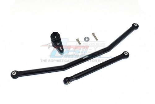 Aluminium Front Steering Tie Rods + Aluminium 7075 25T Servo Horn W. Built-In Spring (2 Positioning Holes) - 6Pcs Set Black by GPM Racing