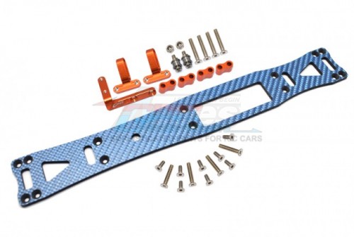 Carbon Fiber (Blue) + Aluminium Sub Chassis -27Pcs Set Orange by GPM Racing