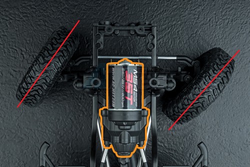 The chassis is a concept from the actual vehicle configuration, with a front-mounted motor and rear-mounted battery, for great climbing performance and body balance ability.