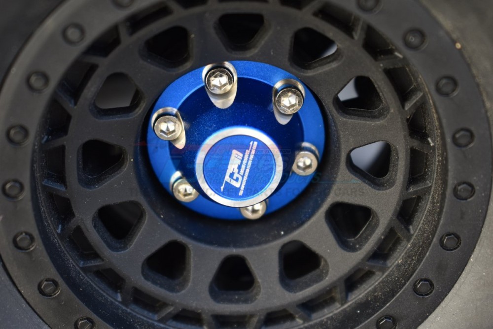 GPM Racing Aluminium Silver Inlay Design Wheel Lock - 4Pcs Set Blue for Axial SCX6