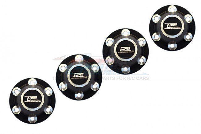 GPM Racing Aluminium Silver Inlay Design Wheel Lock - 4Pcs Set Black for Axial SCX6