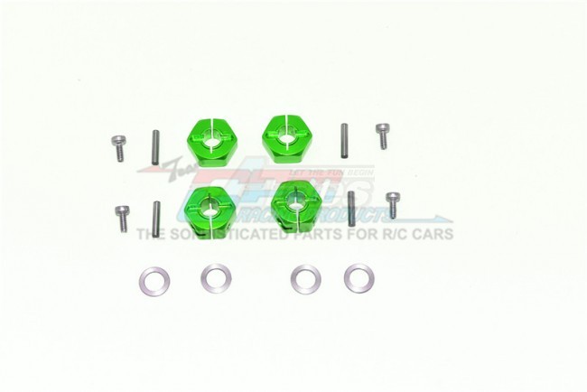Aluminium Hex Adapters 6MM Thick (Front) 8MM Thick (Rear) - 16Pcs Set Green by GPM Racing