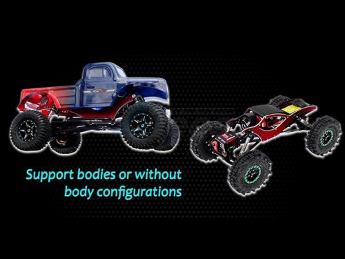 Precision CNC manufactured from aerospace aluminum with beautiful multiple anodizing colors, the frame kit can support both body and body-less configurations. The Scythe brings a new fresh look to your SCX24 that sure offers many heads turns.