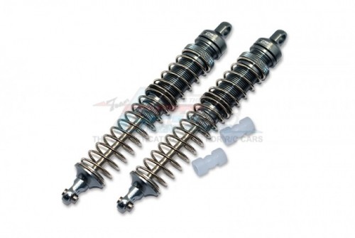 Major advantages of upgrading to this product: 1. The coil is thickened from 1.3mm to 1.4mm to provide more power (users can still use original spring as optional). 2. Shock shaft is thickened from 3.0mm to 4.0mm in order to be more sturdy and prevent bending. 3. Aluminum shock cylinder is light and sturdy, spring retainer is tightly sealed to prevent oil leaking. 4. Two-section spring design avoids bending due to long-term compression. 5. Silicone oil is filled with smooth travel. 6. Aluminium 6061 T6 is a light material anodized for longer durability, corrosion resistance and aesthetics. It has a high tensile strength for greater durability when doing extreme RC action 7. The damper top uses a special Delrin collar, and the ball end head length is 8.0 mm