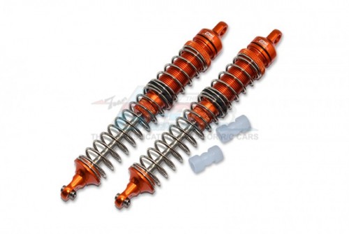 Major advantages of upgrading to this product: 1. The coil is thickened from 1.3mm to 1.4mm to provide more power (users can still use original spring as optional). 2. Shock shaft is thickened from 3.0mm to 4.0mm in order to be more sturdy and prevent bending. 3. Aluminum shock cylinder is light and sturdy, spring retainer is tightly sealed to prevent oil leaking. 4. Two-section spring design avoids bending due to long-term compression. 5. Silicone oil is filled with smooth travel. 6. Aluminium 6061 T6 is a light material anodized for longer durability, corrosion resistance and aesthetics. It has a high tensile strength for greater durability when doing extreme RC action 7. The damper top uses a special Delrin collar, and the ball end head length is 8.0 mm
