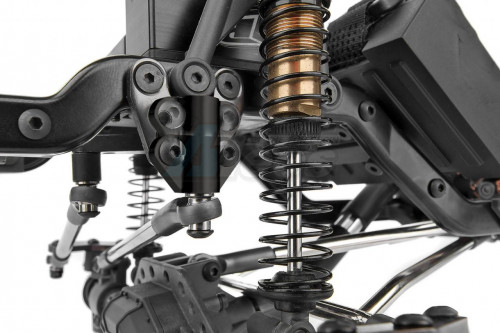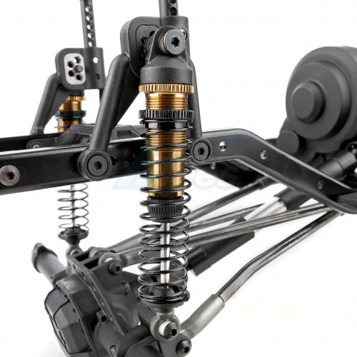- Factory TeamTM shocks: For ultra-smooth performance and looks, our machined aluminum threaded bronze-anodized shocks with black plastic caps and aluminum collars are included.