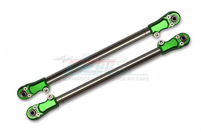 GPM Racing Stainless Steel Adjustable Rear Upper Chassis Link Tie Rods With Aluminium Ends (LOS05021) - 2Pcs Set Green for Team Losi 1/6 SUPER BAJA REY 4X4