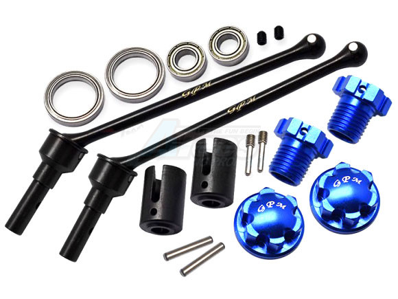 GPM Racing Hard Steel Front/Rear Extend Cvd Shaft (110MM) With Aluminium Wheel Lock & Hex Claw (Truck-89086-4) - 18Pcs Set Blue for Traxxas Maxx WideMaxx