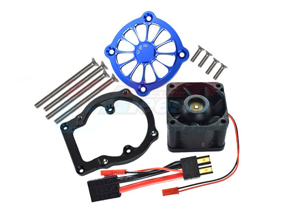 GPM Racing Aluminium 6061-T6 Motor Heatsink With Cooling Fan (95076-4) - 12Pcs Set Blue for Traxxas Sledge