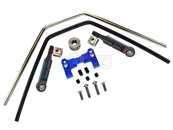 GPM Racing Aluminium Front/Rear Sway Bar Mount With Linkage And Wire (95076-4) - 15Pcs Set Blue for Traxxas Sledge