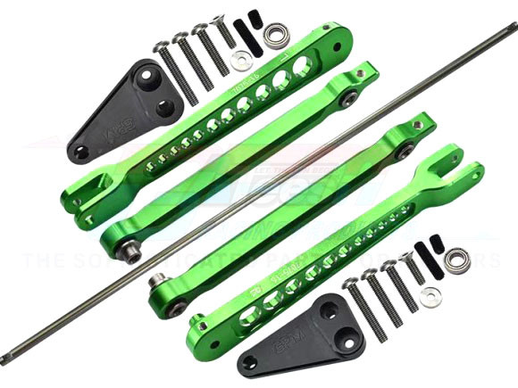 GPM Racing Aluminium 7075-T6 Rear Anti Swing Rod & Stabilizer Bar (LOS03030) - 23Pcs Set Green for Team Losi Hammer Rey