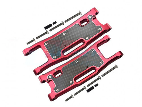 Aluminium 6061-+T6 Rear Lower Arms+ Carbon Fibre Dust-Proof Protection Plate (95076-4) - 28Pcs Set Red by GPM Racing