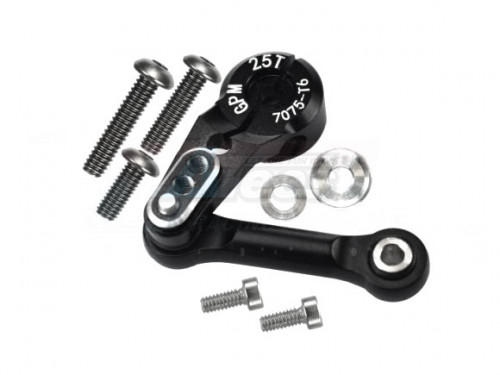 GPM Racing Aluminium 7075-T Tie Rod+25T Servo Horn (Silver Inlay Verison) (95076-4) - 9Pcs Set Black for Traxxas Sledge