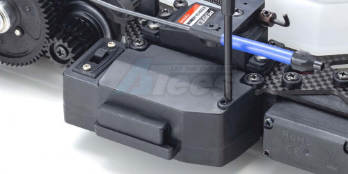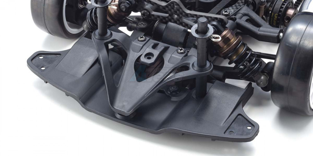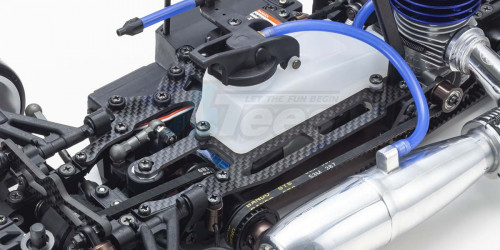 Carbon front and rear shock stays, radio plate, and belt tensioner plate are equipped as standard features.