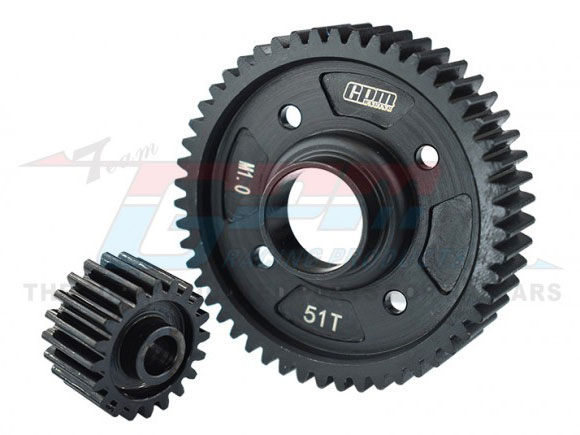 • Factory description: GPM Racing Traxxas XMAXX Medium Carbon Steel Center Diff Output Gear 51T And Input Gear 20T (For 8S Monster Truck)