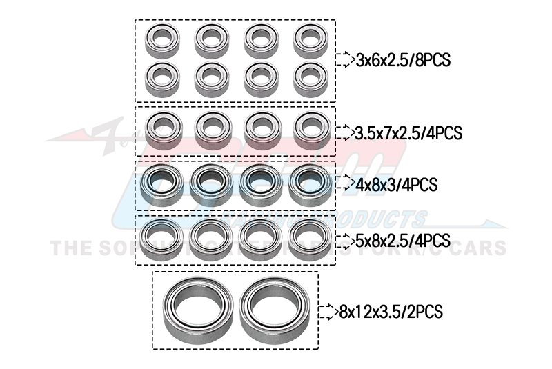 • Factory description: GPM Racing Traxxas TRX-4M Traxxas TRX-4M Full Set Steel Sealed Bearings (97074-1/97054-1)