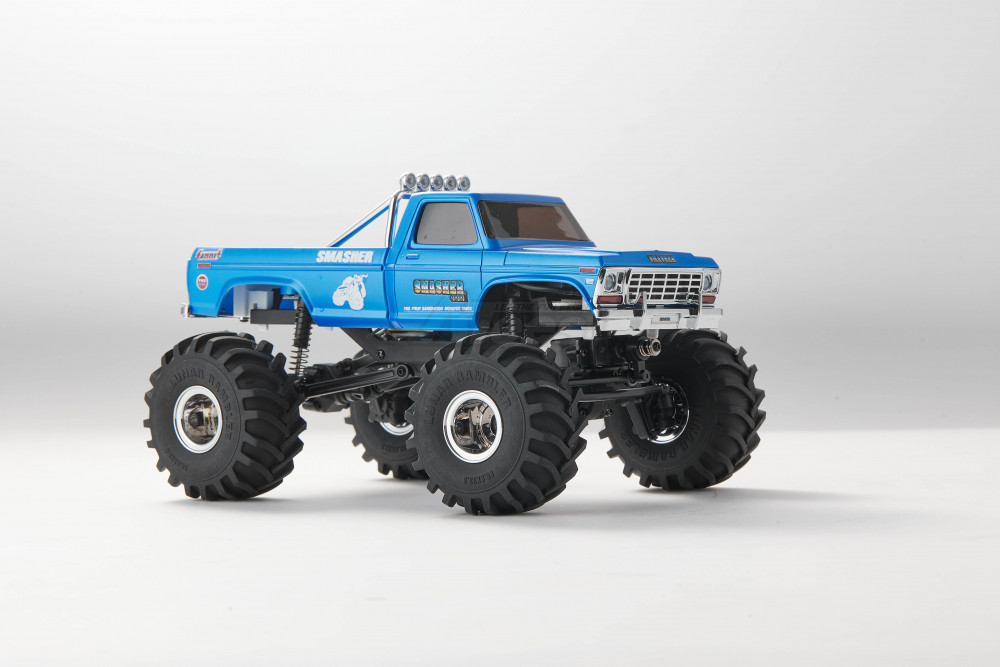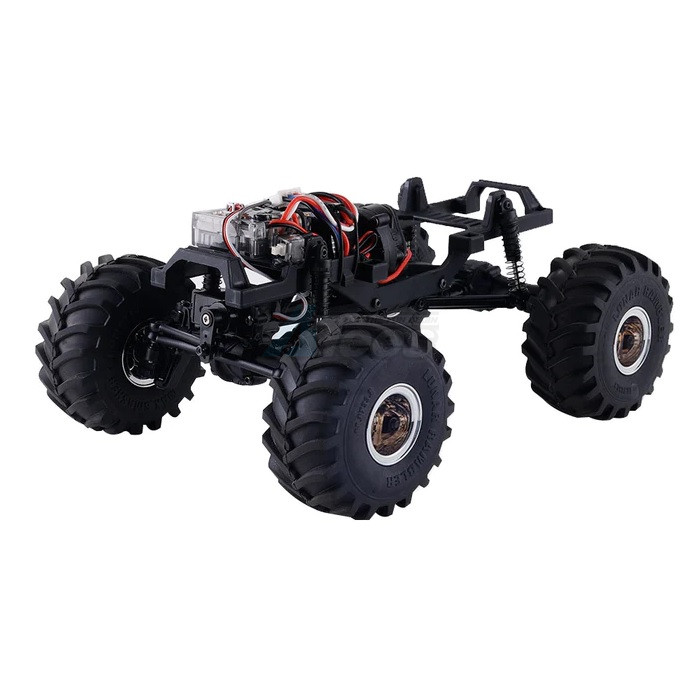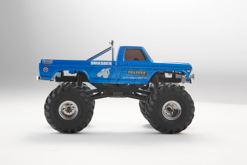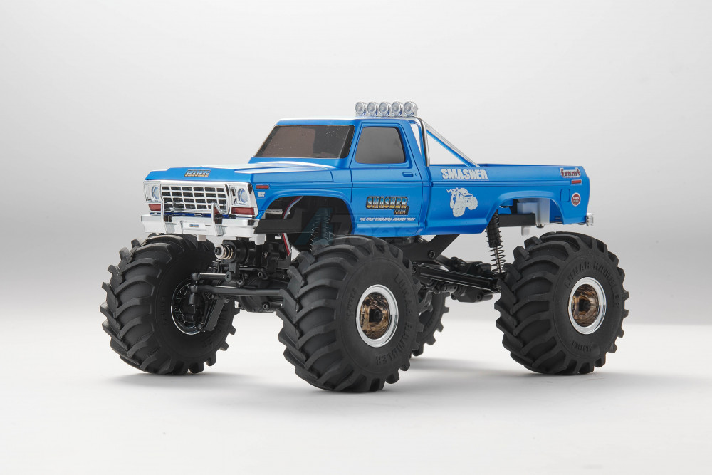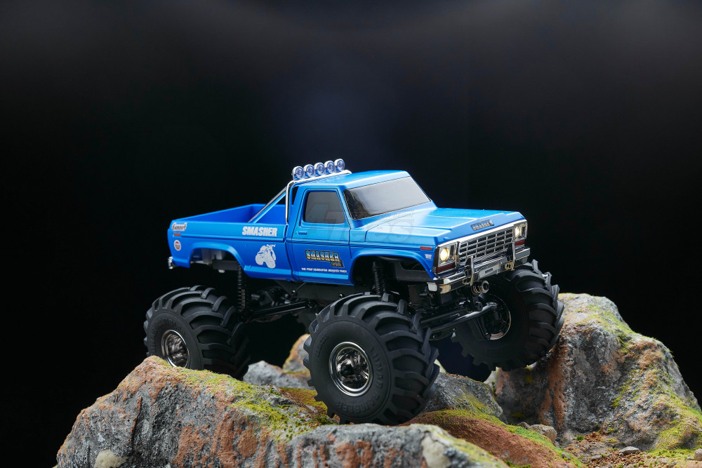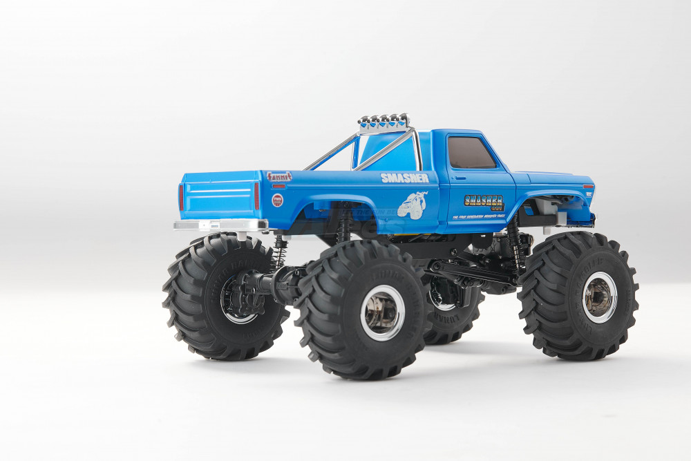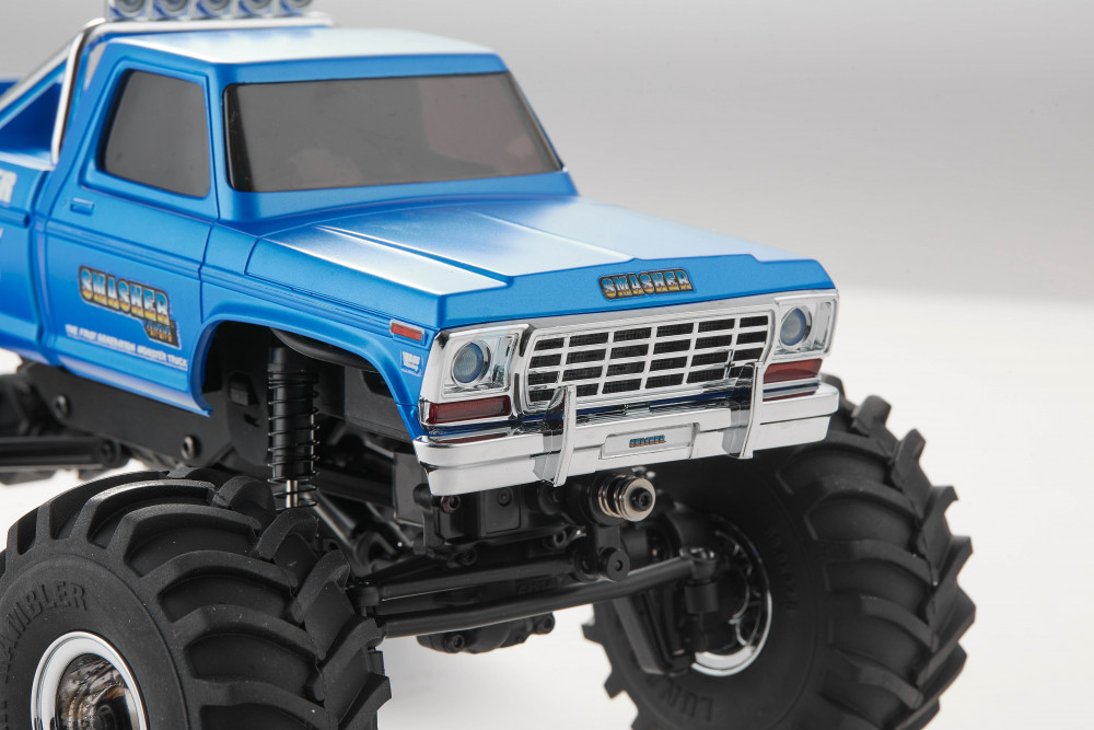 The FMS 1:24 SMASHER V2 is coming! FCX24 transmitter has been iteratively updated, adding adjustable brake and drag brake functions. The SMASHER V2 adopts the FCX24 chassis. The huge hollow tires provide excellent shock absorption. The two-speed gearbox, controlled by the third channel, can not only provide strong torque but also support high-speed off-road driving. The front and rear axles are equipped with planetary gear differentials by default, which is conducive to high-speed off-road driving, posture simulation, and outstanding cornering performance. Meanwhile, straight axle parts without differentials are also provided for users to replace themselves. When the straight axle parts are replaced, the differential function of the front and rear axles is lost but its climbing ability is completely released, and no matter whether it is rocks or mud, it can pass through powerfully. Of course, the hybrid solution of installing a straight axle on the rear axle and installing a differential on the front axle is also an option, which not only enables high-speed off-roading but also retains a certain climbing ability. The car body design restores the appearance of a first-generation American pickup truck. The exquisite stickers and an overabundance of electroplated parts bring us back to that crazy and bloody era.