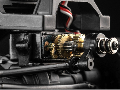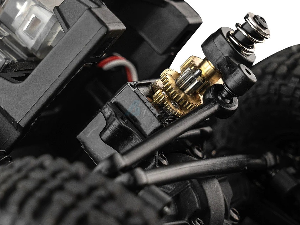 FMS designed pioneeringly two-speed transmission into micro 1/24 RC cars, reaching maximum mechanical performance in the smallest size. The low gear reduction ratio is 99:1 with stronger torque output, which is ideal for extreme climbing adventure; The high gear reduction ratio is 25:1, and the speed is higher than that of all similar products currently on the market. You can experience the fun of high-speed breakthroughs, small jumps, and even heading up