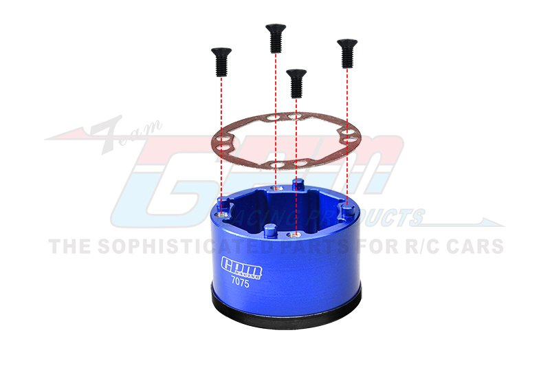 GPM Racing Medium Carbon Steel + Aluminium 7075-T6 Front/Rear Diff Case (ARA110002T1/T2) Blue for Arrma Kraton 8S BLX
