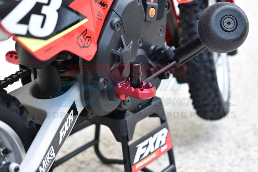 Aluminum 7075-T6 Foot Pegs, This structural design significantly boost in the durability of your Promoto-MX. Experience enhanced strength and resilience, ensuring that your RC motorcycle can handle the rigors of intense rides and challenging terrains.