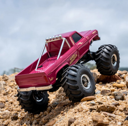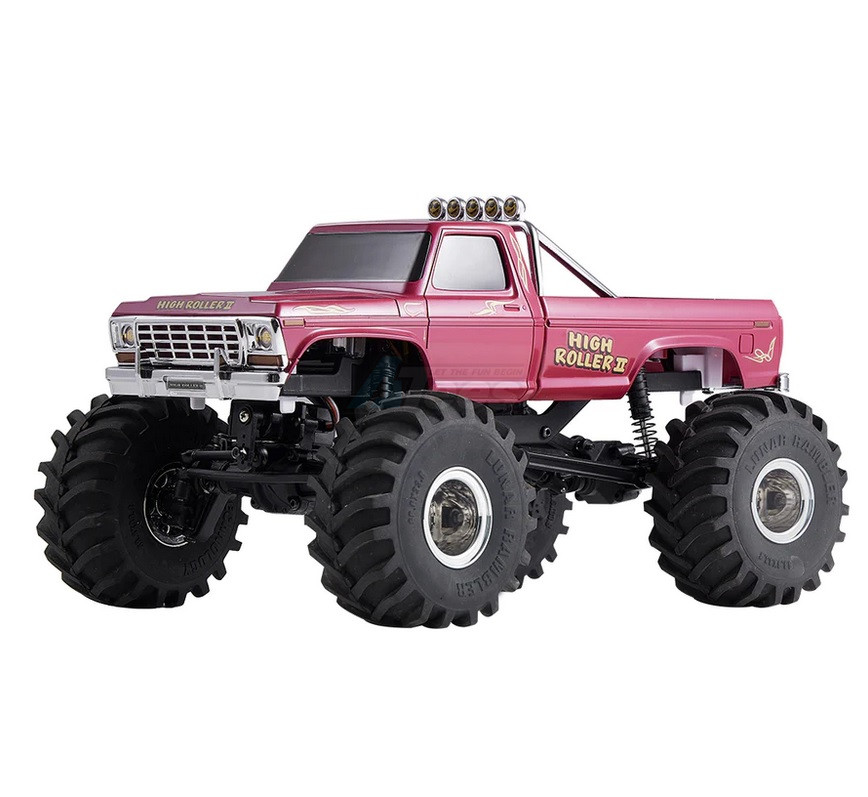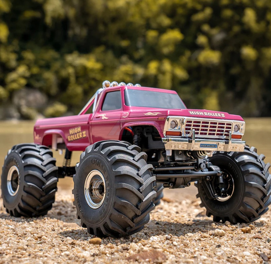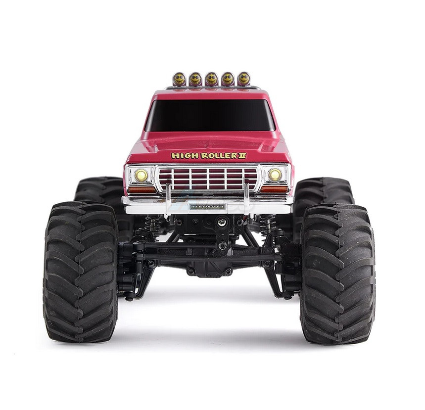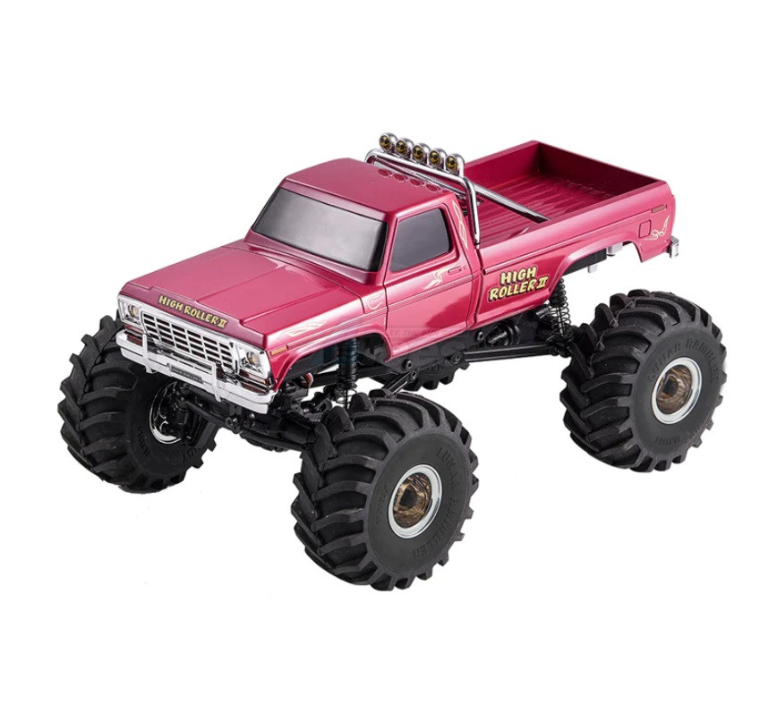 The FMS 1:24 SMASHER V2 is coming! FCX24 transmitter has been iteratively updated, adding adjustable brake and drag brake functions. The SMASHER V2 adopts the FCX24 chassis. The huge hollow tires provide excellent shock absorption. The two-speed gearbox, controlled by the third channel, can not only provide strong torque but also support high-speed off-road driving. The front and rear axles are equipped with planetary gear differentials by default, which is conducive to high-speed off-road driving, posture simulation, and outstanding cornering performance. Meanwhile, straight axle parts without differentials are also provided for users to replace themselves. When the straight axle parts are replaced, the differential function of the front and rear axles is lost but its climbing ability is completely released, and no matter whether it is rocks or mud, it can pass through powerfully. Of course, the hybrid solution of installing a straight axle on the rear axle and installing a differential on the front axle is also an option, which not only enables high-speed off-roading but also retains a certain climbing ability. The car body design restores the appearance of a first-generation American pickup truck. The exquisite stickers and an overabundance of electroplated parts bring us back to that crazy and bloody era.