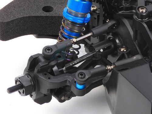 • Aluminum-cylinder oil dampers employing shaft length suited for on-road performance and dedicated 3.5mm thick carbon fiber damper stays, and carbon fiber-reinforced rigid lower chassis.