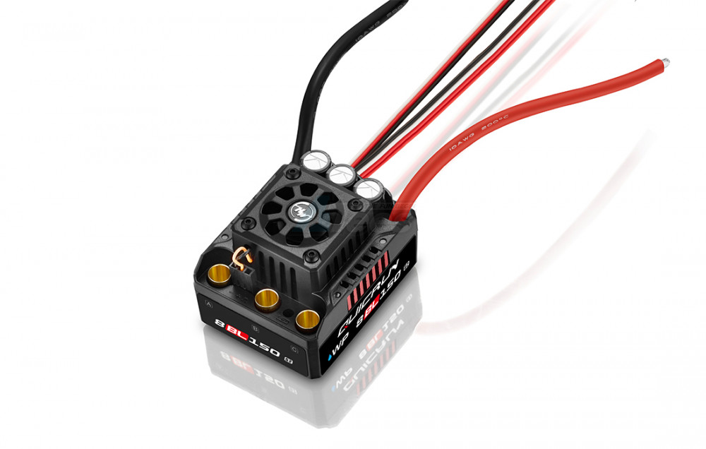 The internal power board of the ESC is covered with a patented copper heat conduction bus bar to help facilitate the rapid conduction of internal heat to the radiator. Additionally, a fan is added to dissipate heat. These constitute to a highly reliable cooling system to ensure that the ESC is always at a safe operating temperature.