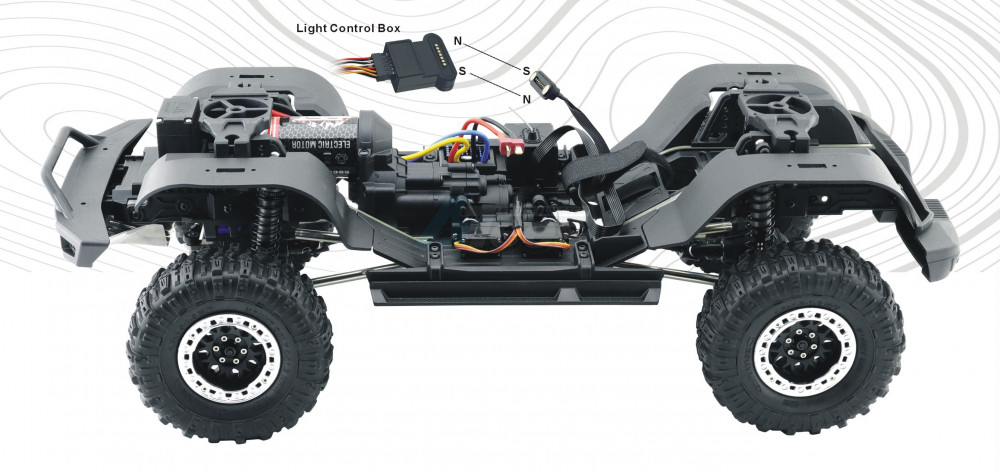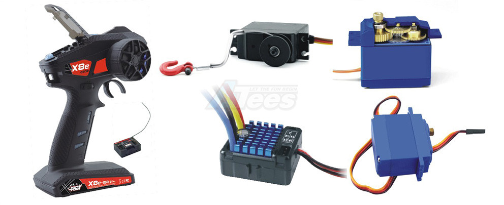 - The "Pro Runner" will be oriented to players in the form of an RTR version, equipped with a 35T RC550 super-strong torque motor, "Hobbywing" WP-1060 special waterproof electronic speed controller with metal gear for the crawler, 25KG all-metal gear waterproof steering servo, ESC can support 2-3S lithium battery mode, and a 6-channel 2.4G remote controller specially designed for this car.
