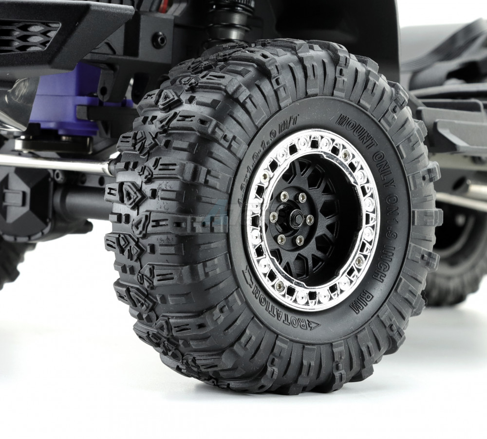 - The wheels are made of butyl rubber, which are 110mm diameter MT tires, coming with a two-piece multi-layer 1.9-inch wheel hub for better climbing grip and more realistic.
