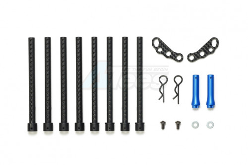 • These rear body mounts for use on the TA08 use 2.5mm carbon fiber bases and aluminum body mount posts. They limit body wobble and ensure stable rear traction.