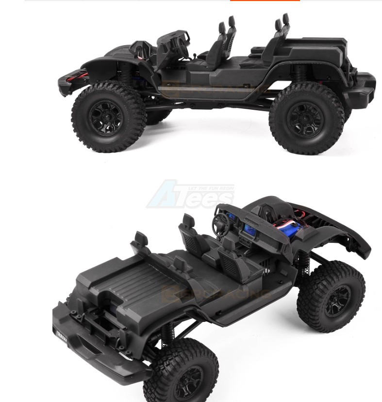 - The kit is made to copy the inside of a real car, getting all the details right. It fits well with the TRX-4M chassis shell. Even though there's not much space, the seat design is roomy, so you don't have to cut the puppet's legs when putting it in. It comes with a central armrest, handbrake, dual gear lever, cup holder, and more cool details.