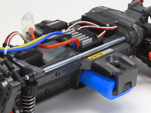 Based around a tough monocoque frame with integrated gearboxes, this compact 4WD chassis gives a thrilling drive whether you take it on the road or flat dirt surfaces. It features a rear-mounted motor, with gear-driven rear wheels and a propeller shaft taking power to the front. Both front and rear gearboxes have differential gears. The battery pack location in the chassis center secures excellent balance, while 4-wheel independent double wishbone suspension employs friction dampers. Off-road capable M-05Ra chassis uprights and hub carriers are also included, and spoke wheels are paired with rally block tires.