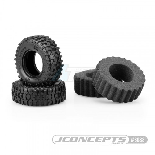 The flexibility of the green compound combined with the lug arrangement gives the tire a grippy feel but still maintains the all-important scale and performance look. The overall height provides plenty of ground clearance for class 1 vehicles for an abundance of terrain. The tires include a medium open cell foam insert capable of standing up to the super soft compound but flexible enough for sharp terrain.