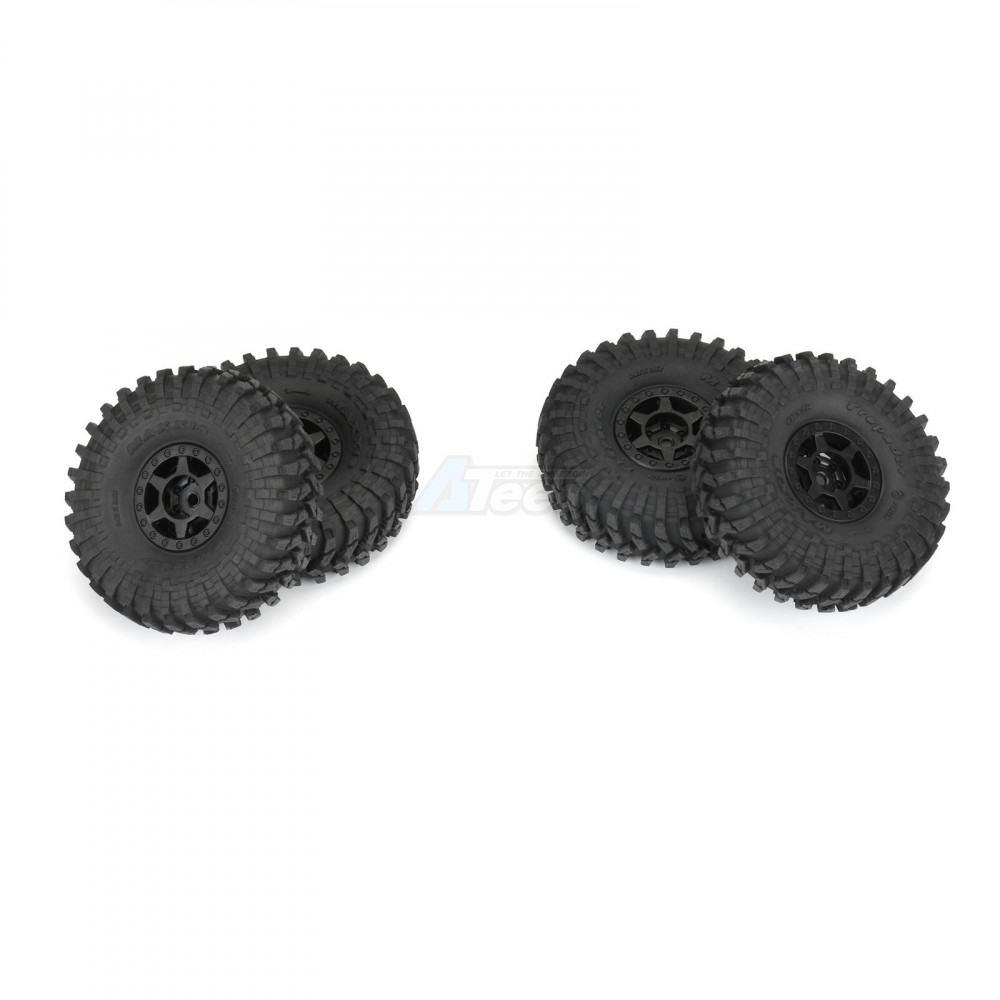 The Trepador® 1.0" tires come in a set of 4, conveniently pre-mounted to our Mini Holcomb Black Internal Bead-Loc 1.0" Plastic 7mm Hex wheels! Just like Pro-Line's 1/10 size Holcomb wheels, these mini versions give your 1/24 crawler a unique, retro-inspired look and are super easy to use by only requiring 3 screws per wheel for mounting tires. The unique 3-piece plastic wheel design bolts together in the back and locks onto Pro-Line's 1.0" Crawling Tires, while also being compatible with many existing 1.0" tires for the SCX24™. The wheels also feature a +2mm offset for a wider, more stable stance. If you own an SCX24™, then Pro-Line's pre-mounted set of Maxxis® Trepador® 1.0" Tires are a must-have! Get your set today!