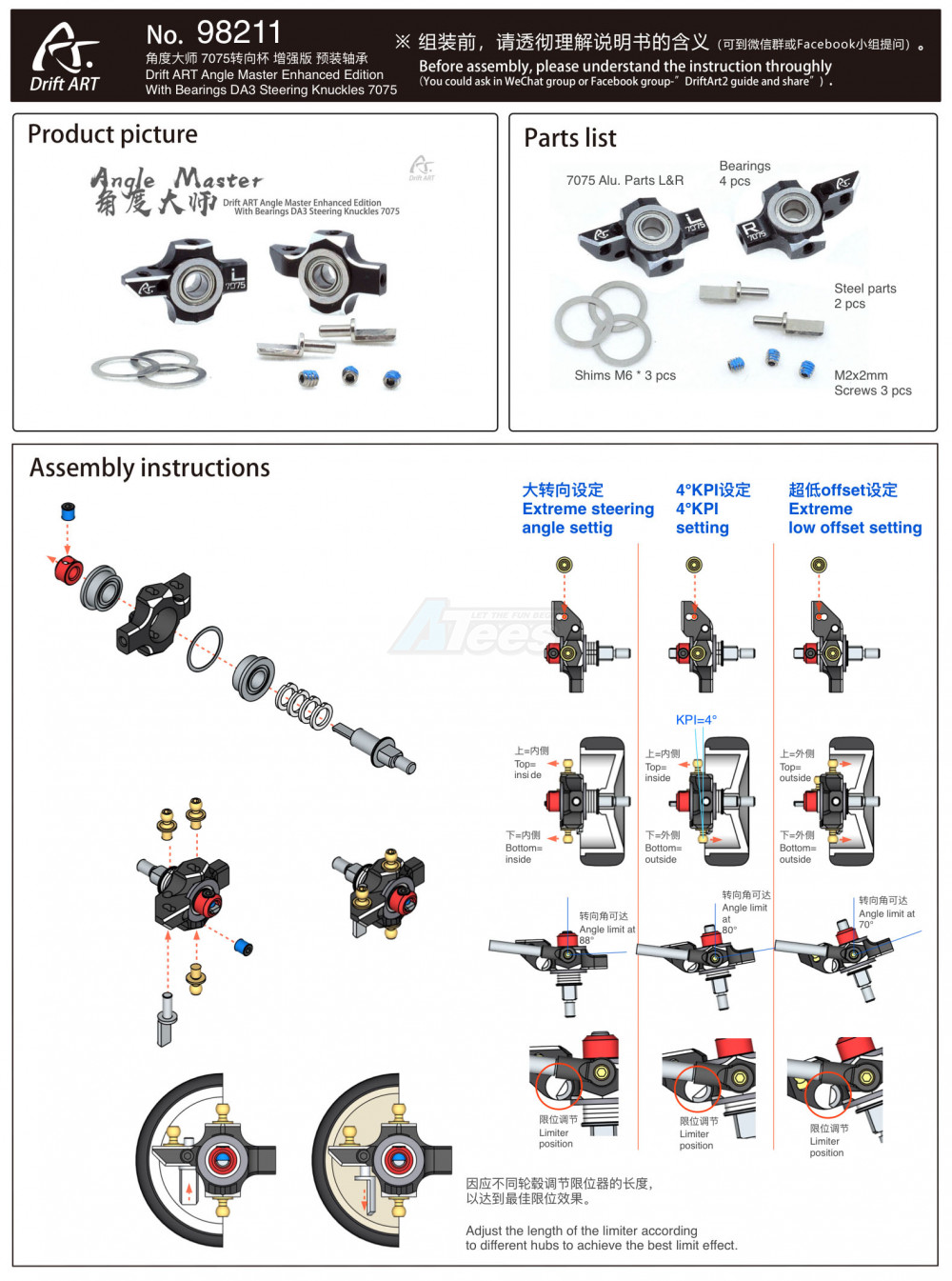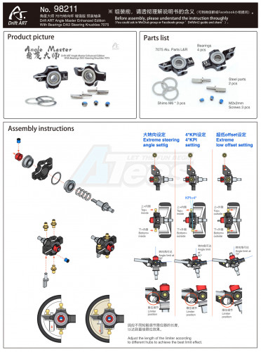 • Factory description: Drift ART DA3 Drift ART Angle Master Enhanced Edition With Bearings DA3 Steering Knuckles 7075