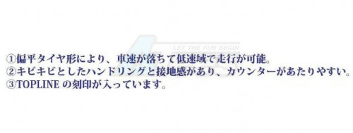 - Factory description: TOPLINE Drift Tire Sports Edition HDPE (Hard Polyethylene)