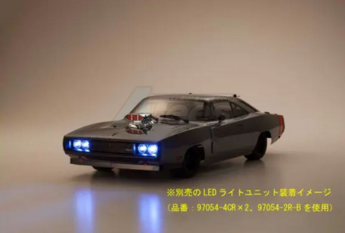 Designed and built for the pure enjoyment of R/C car driving, the FAZER Mk2 welcomes this brushless motor addition to the series. Powering up from the conventional G14L brushed motor to the TORX 10E brushless motor, the 1.6 x speed boost delivers 65km/h (up from about 40 km/h) backed up by the newly incorporated BRAINZ 10 V2 speed controller, sintered pinion gear and aluminum HD center shaft L (previously an optional upgrade) to support the extra power and higher RPMs. This fully upgraded version of the VE specifications boasts an ultra-scale 1970 Dodge Charger body much loved in America, with a Kyosho designed supercharger, and features light buckets that can be equipped with front and rear LEDs and open/close function for concealed headlights. Kyosho’s original color scheme pays homage to the rebel image of this machine and this ‘1970 Dodge Charger Supercharger Spec VE Gray’ is packaged as a pre-built Readyset, so its easy even for beginners to enjoy without delay. Just use your own battery, battery charger and transmitter to experience the first brushless motor-powered model in the VE series!