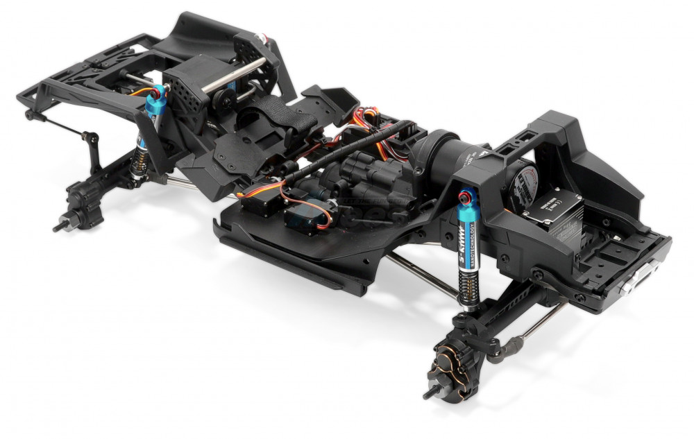 - The deceleration gear of the portal axle is all made of powder steel, the front steering mount cover is made of brass counterweight to increase the unsprung weight and optimize the proportion of counterweight.