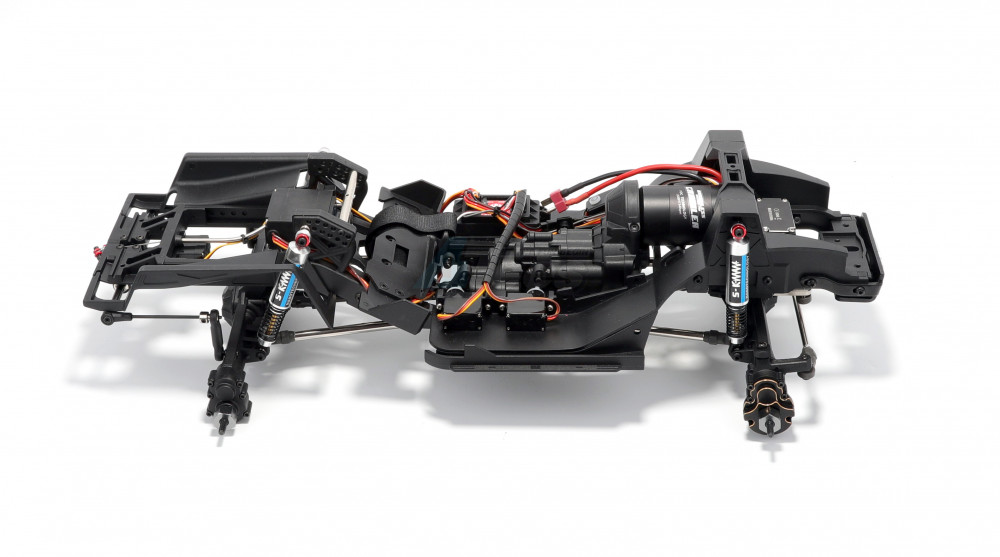 - Servo mounted on axle, C caster, and steering mount use impact-resistant nylon.