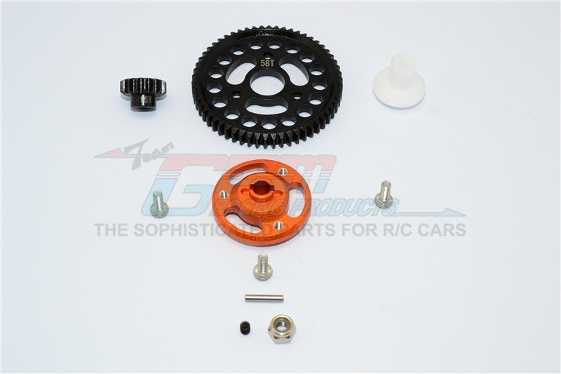 Aluminium Spur Gear Adapter+Steel Gear 58T & 16T - 1Set? Orange by GPM Racing