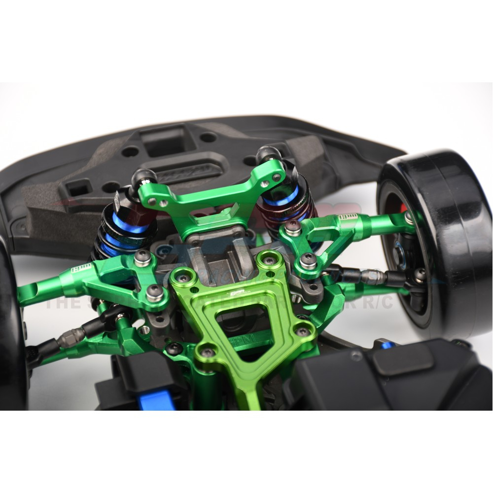 • Adjustable left and right front upper suspension arms boost the appearance and strength of your 4-Tec Drift. The billet 7075 alloy construction adds strength and precision with a brilliantly anodized finish