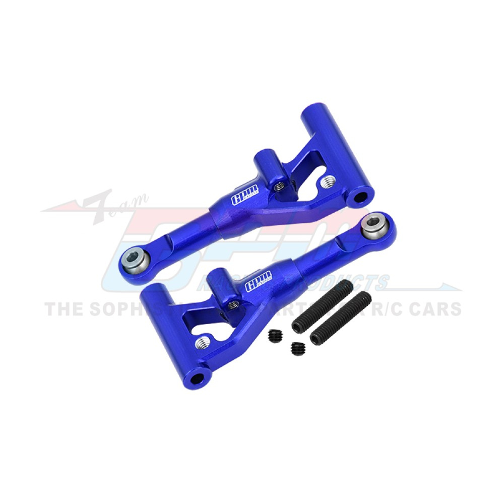 Adjustable left and right front lower suspension arms boost the appearance and strength of your 4-Tec Drift. The billet 7075 alloy construction adds strength and precision with a brilliantly anodized finish