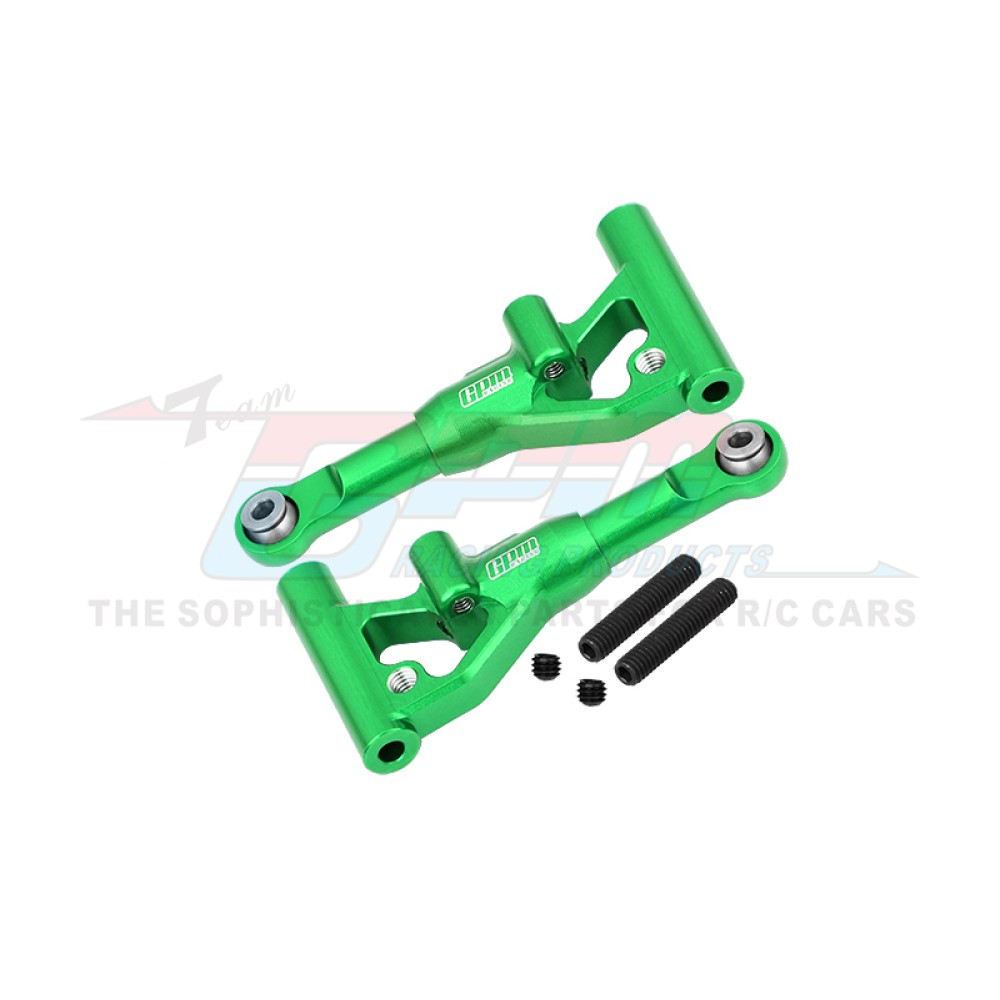 Adjustable left and right front lower suspension arms boost the appearance and strength of your 4-Tec Drift. The billet 7075 alloy construction adds strength and precision with a brilliantly anodized finish