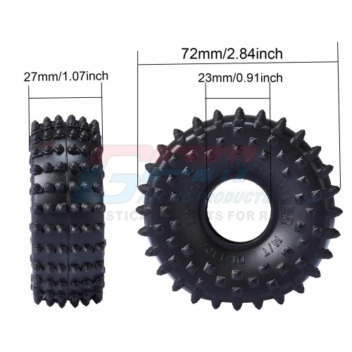 Factory description: GPM Racing Traxxas TRX-4M Widen 1.0 Inch Nailed Rubber Tires 72mm X 27mm With Foam Insert